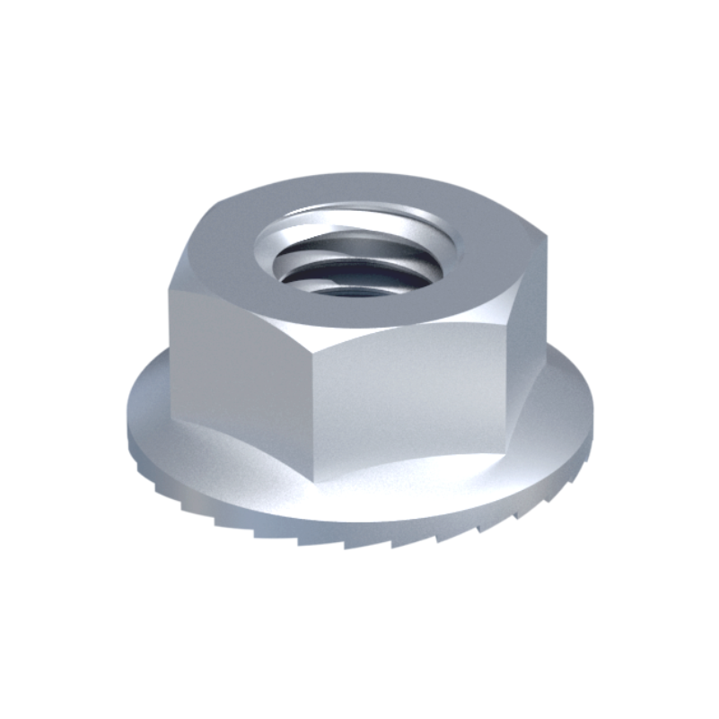 Specificaties : flensmoer DIN 6923 met metrische draad en vertanding tegen losdraaien.