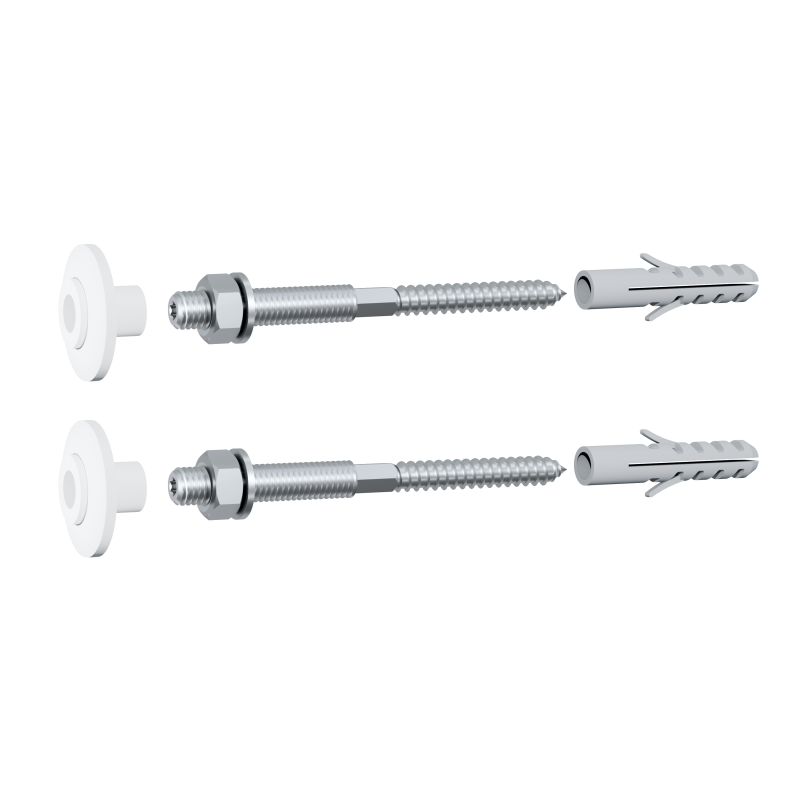 | Specificaties | : fontein bevestiging set (2x), stokeinden M8 x 90 mm + plug, ring, moer en geleidingsring. |