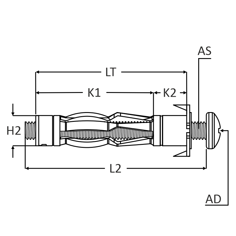 | Bevestigen | : de weerhaken voorkomt meedraaien in het boorgat van het plaatmateriaal waardoor veilige montage mogelijk is. |