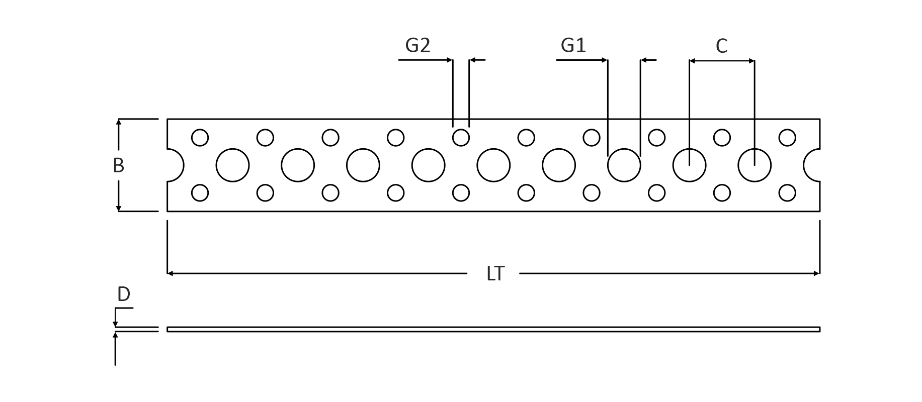 | Specificaties (2) | : voorzien van doorlopend gaten patroon. |