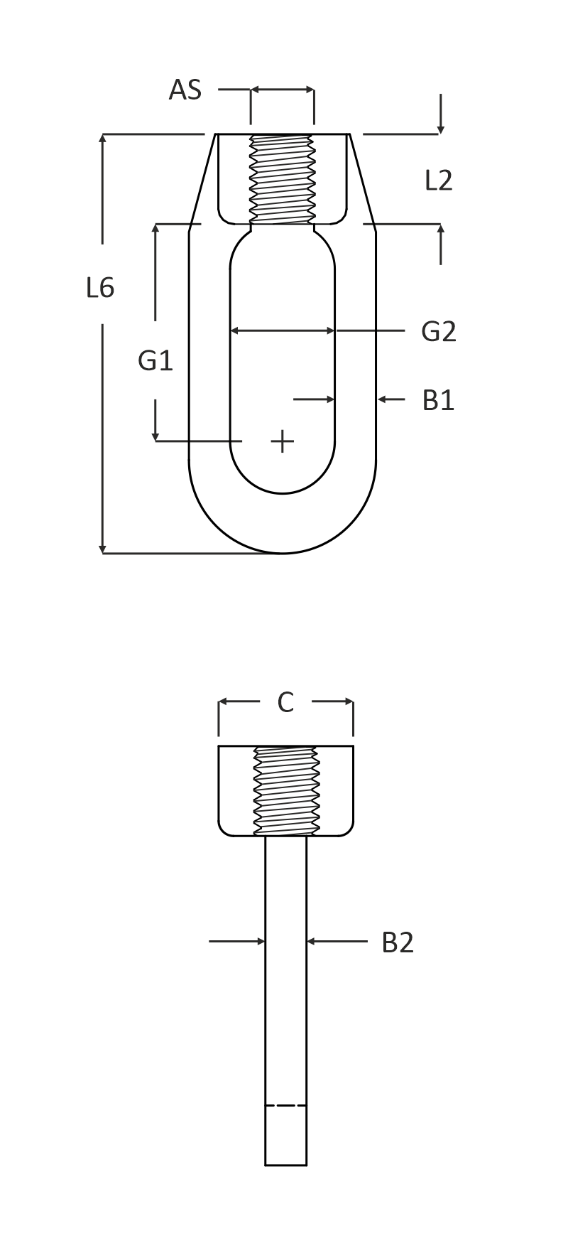 Specificaties : ophangelementen: oogmoer met binnendraad.